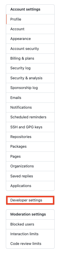 Developer setting을 클릭하고 Personal access tokens을 클릭