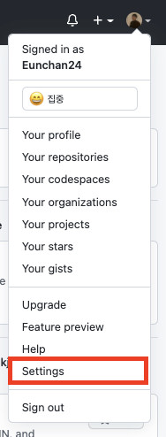 먼저 깃허브에 로그인을 한 뒤 프로필 사진을 클릭합니다!