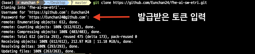 다시 ID/PASSWORD를 요구한다면 PASSWORD 대신 Personal Access Token을 입력해주면 문제없이 잘 작동합니다!
