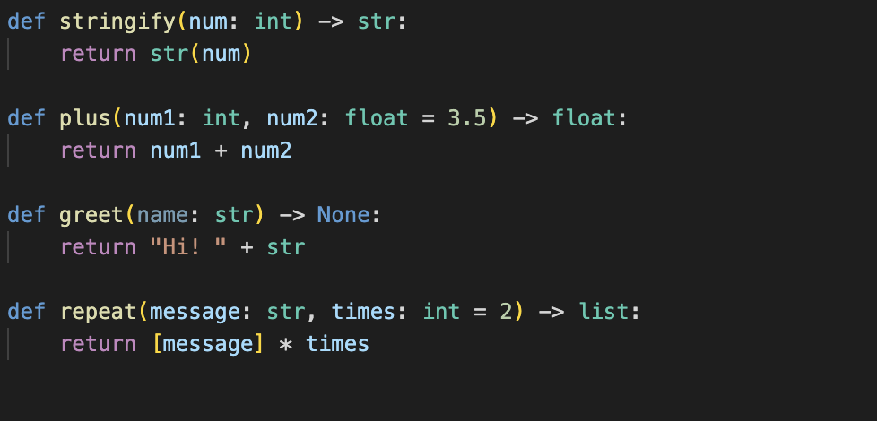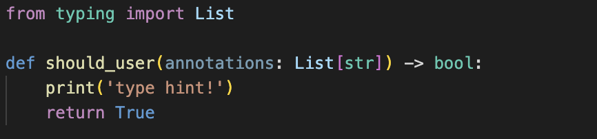 간단하게 타입 힌트를 어떻게 사용하는지 보겠습니다.